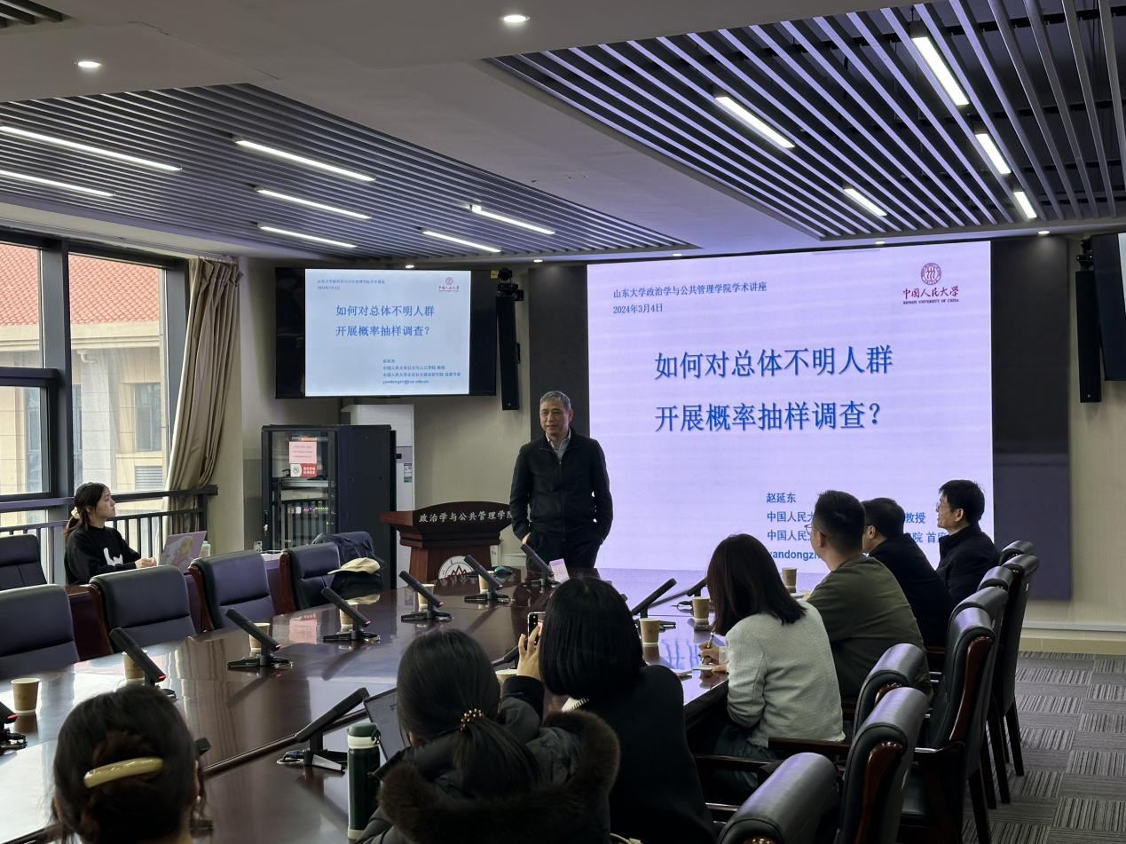 2024年3月4日,由304永利集团官网入口、304永利集团官网入口生活质量与公共政策研究中心主办的“敏政·厚生”专家讲坛第一期顺利举行。本次讲座主题为“如何对总体不明群体开展概率抽样调查”,由中国人民大学社会与人口学院教授、中国人民大学北京社会建设研究院首席专家赵延东主讲,304永利集团官网入口教授、304永利集团官网入口生活质量与公共政策研究中心执行主任张乐主持。