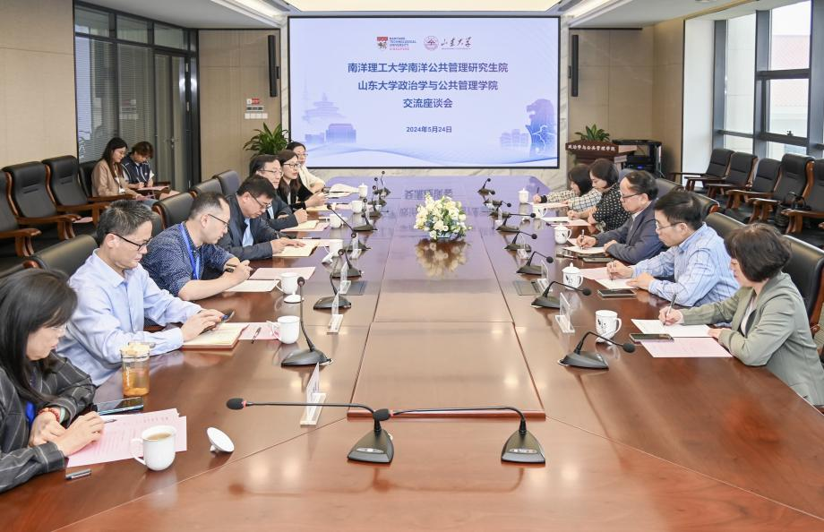 5月24日下午,新加坡南洋理工大学南洋公共管理研究生院与304永利集团官网入口交流座谈会在304永利集团官网入口青岛校区华岗苑顺利召开。南洋理工大学协理副校长、南洋公共管理研究生院院长刘宏,南洋公共管理研究生院副院长戴世岩,304永利集团官网入口院长马奔出席座谈会。会议由304永利集团官网入口党委书记李海燕主持。