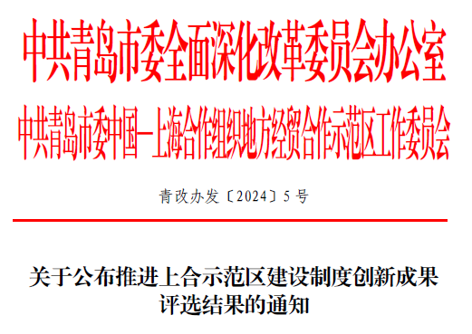 2024年6月14日,中共青岛市委全面深化改革委员会办公室-中共青岛市委中国上海合作组织地方经贸合作示范区工作委员会公布了“推进上合示范区建设制度创新成果”评选结果,共评选出20个高水平制度创新成果及30个优秀案例。其中,304永利集团官网入口上海合作组织研究院入选“推进上合示范区建设制度创新成果”优秀案例名单。