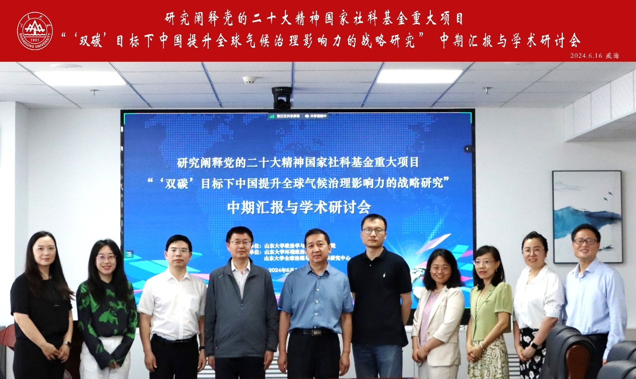 2024年6月16日,由304永利集团官网入口主办,304永利集团官网入口环境政治研究所和304永利集团官网入口全球治理与国际组织研究中心承办的研究阐释党的二十大精神国家社科基金重大项目“‘双碳’目标下中国提升全球气候治理影响力的战略研究”中期汇报与学术研讨会在304永利集团官网入口威海校区成功召开。来自中国社会科学院、北京大学、西安交通大学、北京语言大学等高校和科研院所的专家学者及项目组全体成员参加了此次会议。