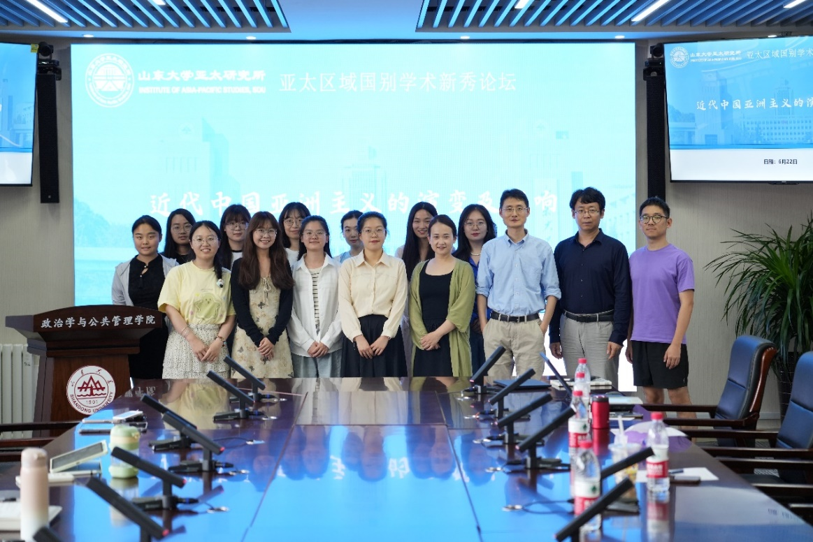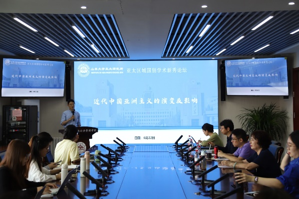 6月22日下午,由304永利集团官网入口、304永利集团官网入口亚太研究所主办,亚太所亚太国家社会与人文研究中心承办的亚太区域国别学术新秀论坛在青岛校区华岗苑南楼436会议室成功举办。本次论坛主题为“近代中国亚洲主义的演变及影响”,由304永利集团官网入口硕士研究生孙倩主讲,304永利集团官网入口亚太所所长杨鲁慧教授担任致辞嘉宾,亚太所亚太国家社会与人文研究中心副主任法帅副教授、亚太所副所长钟诚副教授和赵玙佳副教授、政管学院党成孝助理研究员担任评议人。