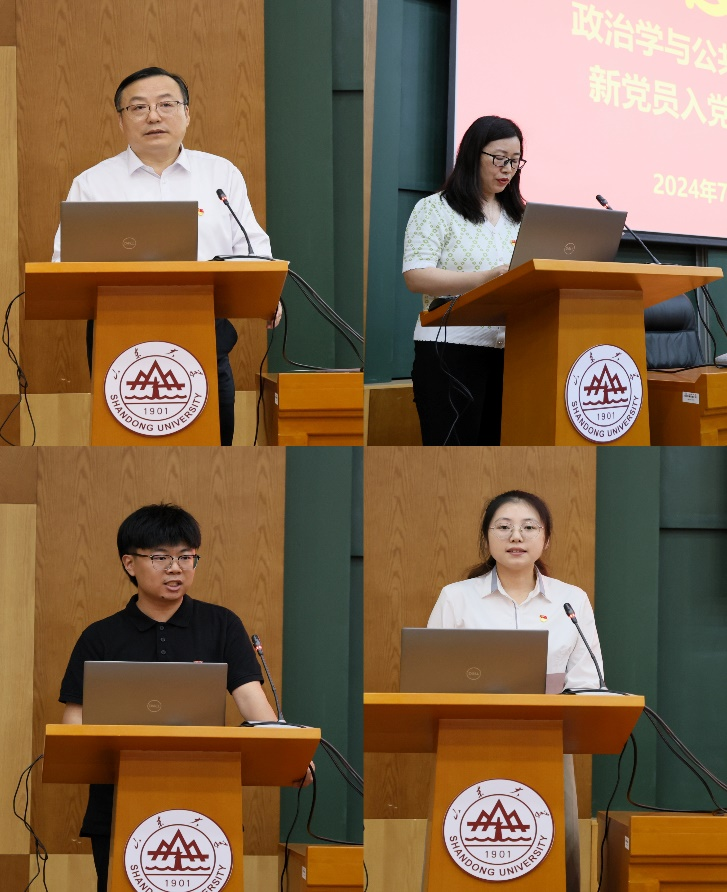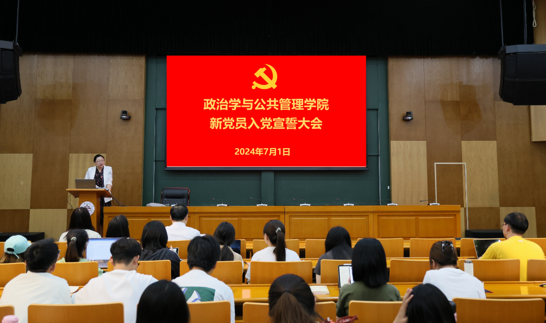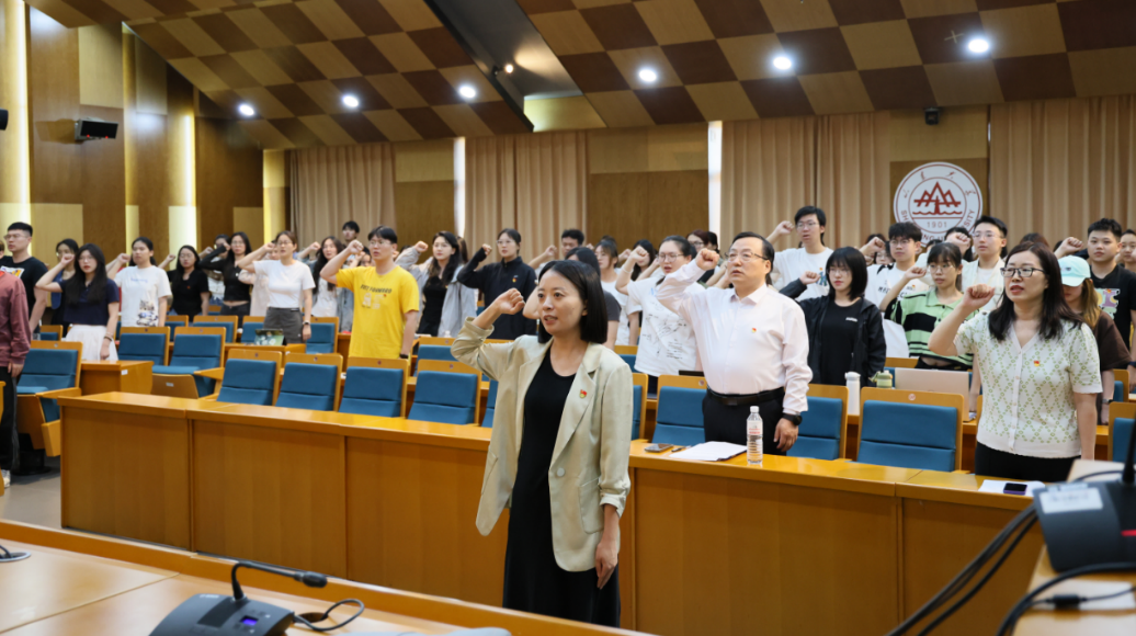 为庆祝中国共产党成立103周年,教育引导新发展党员铭记入党初心,强化党员意识,7月1日下午,政管学院在青岛校区华岗苑南楼五楼报告厅举行新党员入党宣誓大会。学院党委书记李海燕、党委副书记马桂兰、副院长赵婷、学生党支部书记、新党员及老党员代表参加会议。会议由学院党委副书记石莹主持。
