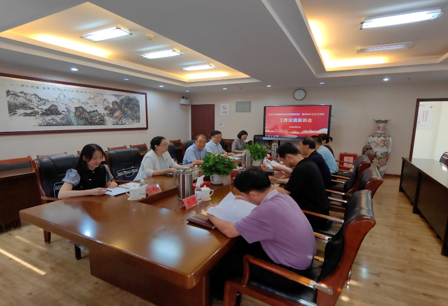 7月10日下午,政管学院一行到中共青岛市委党校、青岛社会主义学院调研交流。在中共青岛市委党校,政管学院一行与中共青岛市委党校分管日常工作的副校长岳国峰、副校长展旭杰等座谈交流。双方围绕学科建设、研究生培养、人才队伍建设等方面进行了交流,希望下一步能够坚持互联互建、加强资源共享,推动双方在师资培养、学生就业等方面开展更深层次和更高水平的合作。政管学院一行还参观了“勇立时代潮头”党性教育主题馆。该主题馆由中共青岛市委组织部和中共青岛市委党校联合建设,聚焦创新和党性两个关键词,从改革开放的青岛实践,讲述改革创新的青岛故事,展示时代精神的青岛样本,打造党性教育的青岛品牌。中共青岛市委党校组织人事部主任黄方曜、组织人事部副主任纪园园参加活动。
