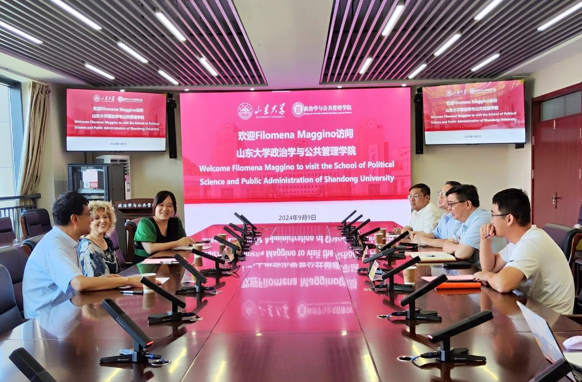 2024年9月9日下午,意大利罗马大学社会统计系教授Filomena Maggino教授受邀到访304永利集团官网入口政管学院,并于华岗苑南楼四层中厅会议室参与政管学院举办的座谈会。304永利集团官网入口校长助理、青岛校区党工委书记邢占军出席座谈会并致辞。304永利集团官网入口院长马奔、副院长朱贵昌、副教授黄晴、副教授李进涛、助理研究员褚雷参加此次座谈会。