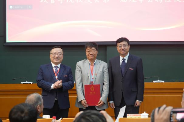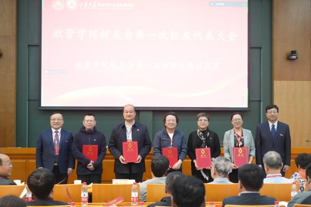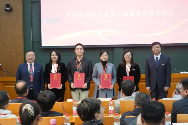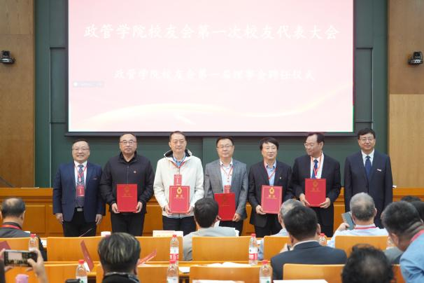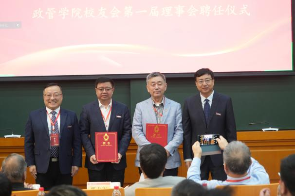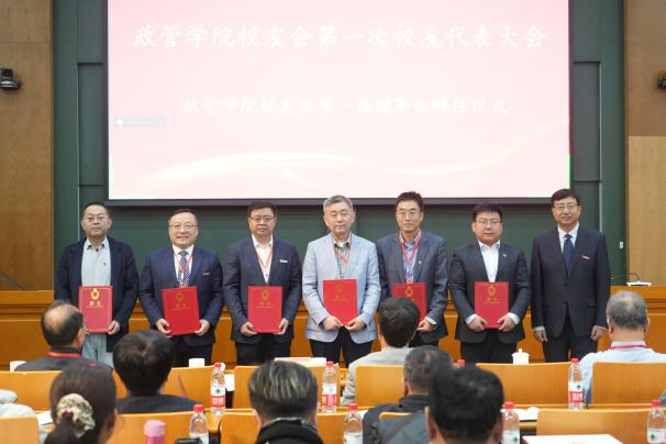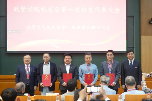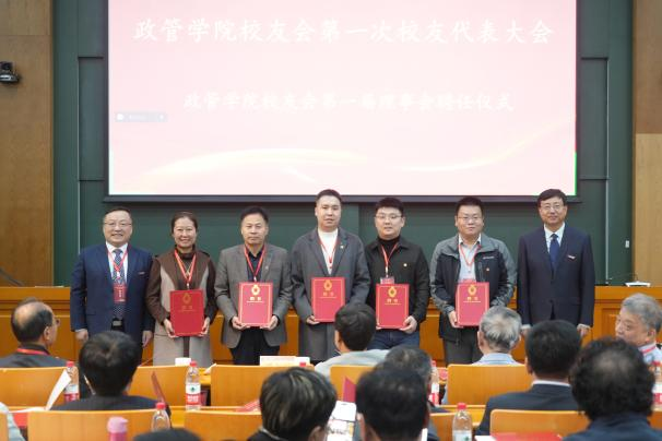 校友代表审议通过《政管学院校友会章程》,现场选举产生了政管学院校友会第一届理事会成员,并举行了理事会聘任仪式。邢占军为第一届理事会理事代表颁发聘书。
