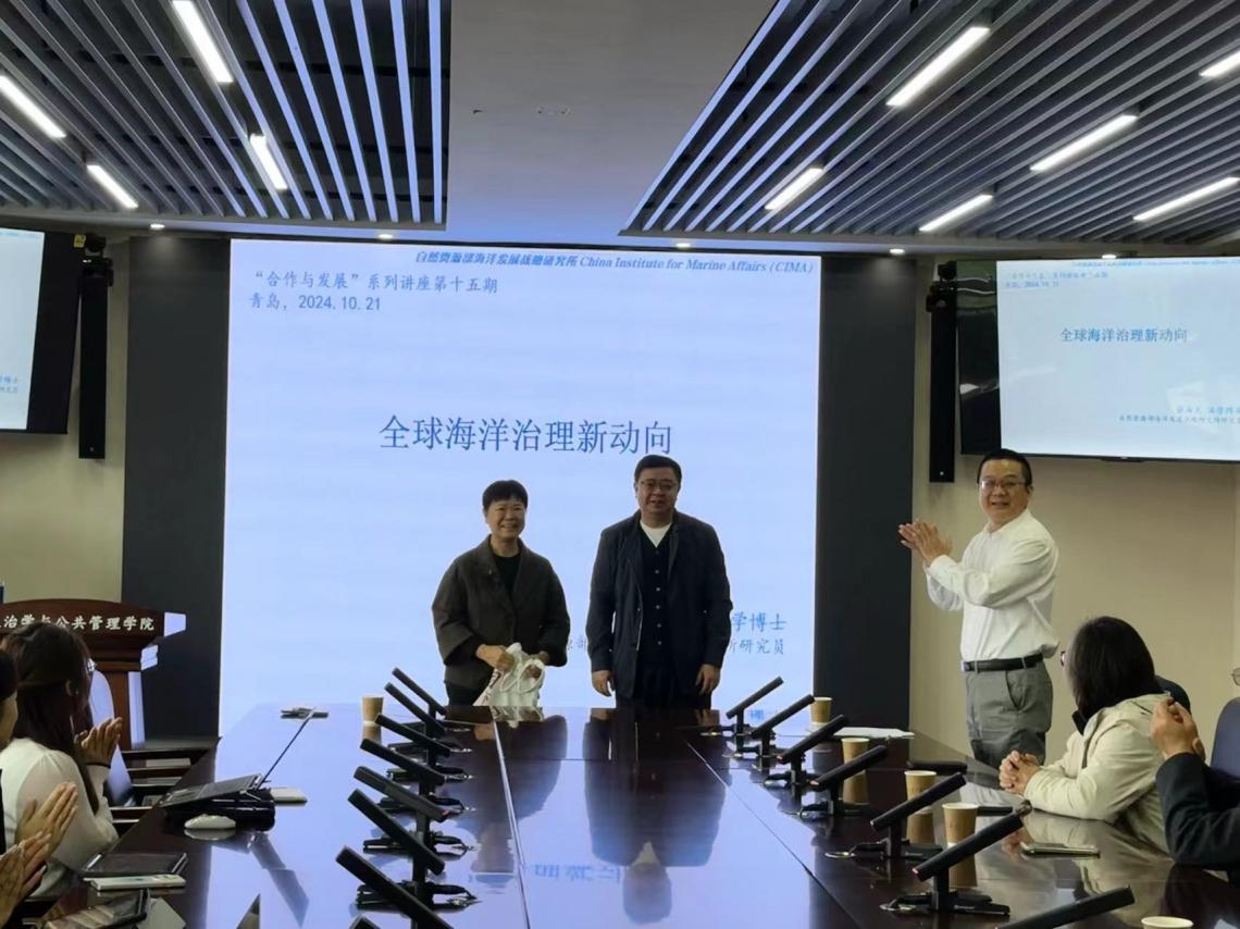 10月21日上午,由304永利集团官网入口、304永利集团官网入口上海合作组织研究院、304永利集团官网入口公共安全研究院、中国—上海合作组织经贸学院联合主办的“合作与发展”系列讲座第十七期在华岗苑南楼四楼中厅会议室顺利举办。本期讲座主题为“全球海洋治理新动向”,由自然资源部海洋战略研究所资深研究员、全国政协委员张海文教授主讲。304永利集团官网入口特聘教授、上海合作组织研究院执行院长盛力教授主持讲座,政管学院、法学院、海洋学院部分师生参与了本次学术交流。会上,政管学院院长马奔对张海文教授的来访表示热烈欢迎,并致送纪念品。