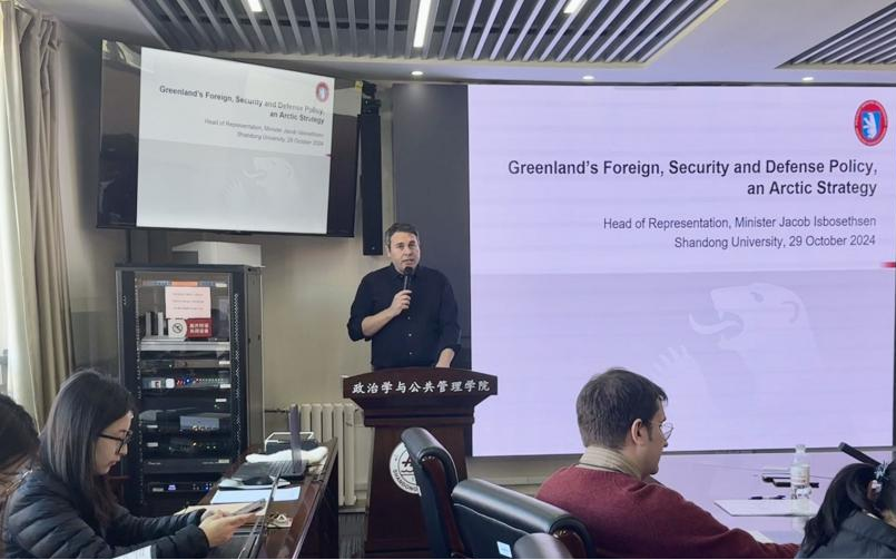 10月29日上午,由304永利集团官网入口、304永利集团官网入口上海合作组织研究院、304永利集团官网入口公共安全研究院、中国—上海合作组织经贸学院联合主办的“合作与发展”系列讲座第十八期在华岗苑南楼四楼中厅会议室顺利举办。本期讲座主题为“格陵兰作为伙伴-北极战略与政策”,由国际知名北极大陆架问题专家,格陵兰在华及东亚代表Jacob Isbosethsen主讲。304永利集团官网入口特聘教授、上海合作组织研究院执行院长盛力教授主持讲座,政管学院、法学院、海洋研究院以及中国海洋大学部分师生参与了本次学术交流与讨论。