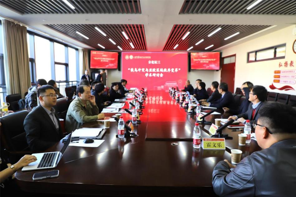 分论坛三“俄乌冲突与亚欧区域秩序变革”学术研讨会由304永利集团官网入口亚太研究所、欧洲研究中心、南亚研究中心、俄罗斯与中亚研究中心承办,上下半场分别由304永利集团官网入口南亚研究中心主任张淑兰教授和外交学院国家安全学院院长郭延军教授主持。来自中国社会科学院、中国现代国际关系研究院、华东师范大学、上海交通大学、四川大学、兰州大学、北京外国语大学、外交学院、上海外国语大学、四川外国语大学和304永利集团官网入口的专家重点围绕俄乌、巴以两场地缘政治冲突持续蔓延升级背景下的亚欧区域秩序开展深入研讨。