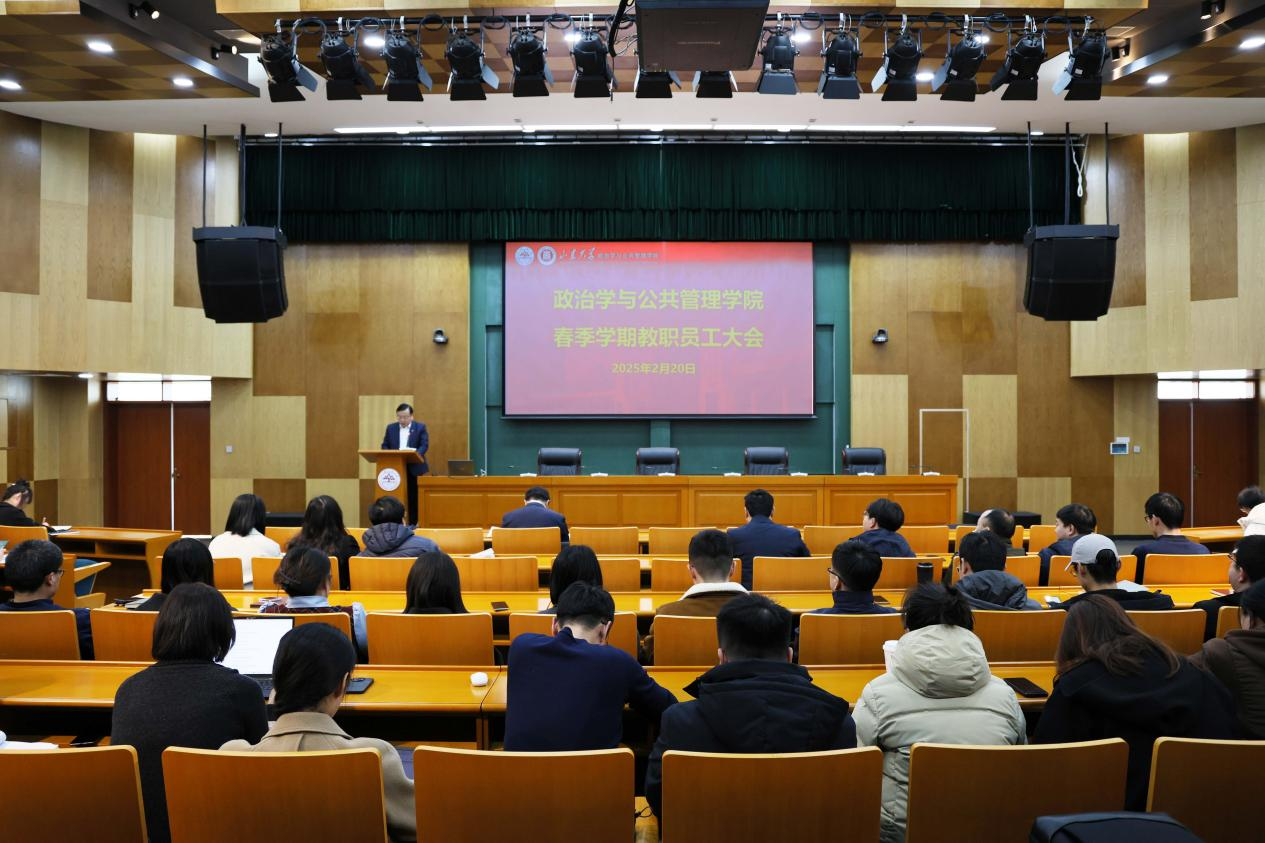 2月20日,304永利集团官网入口于青岛校区华岗苑南楼召开2025年春季学期教职员工大会。政管学院院长马奔、学院领导班子成员及全体教职工参加会议。会议由学院党委书记李海燕主持。