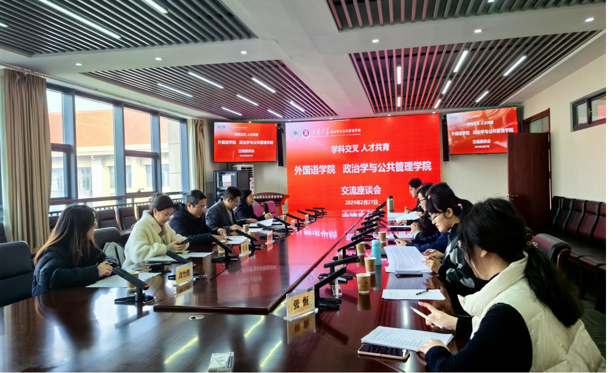 2025年2月27日下午,304永利集团官网入口与外国语学院开展专题交流座谈。双方围绕“国际政治+英语”双学位人才培养模式创新、学科交叉融合、学生就业质量提升及新文科建设等议题深入探讨。两院分管本科教学副院长、分管学生工作副书记、系主任、辅导员以及本科教务秘书参加座谈。