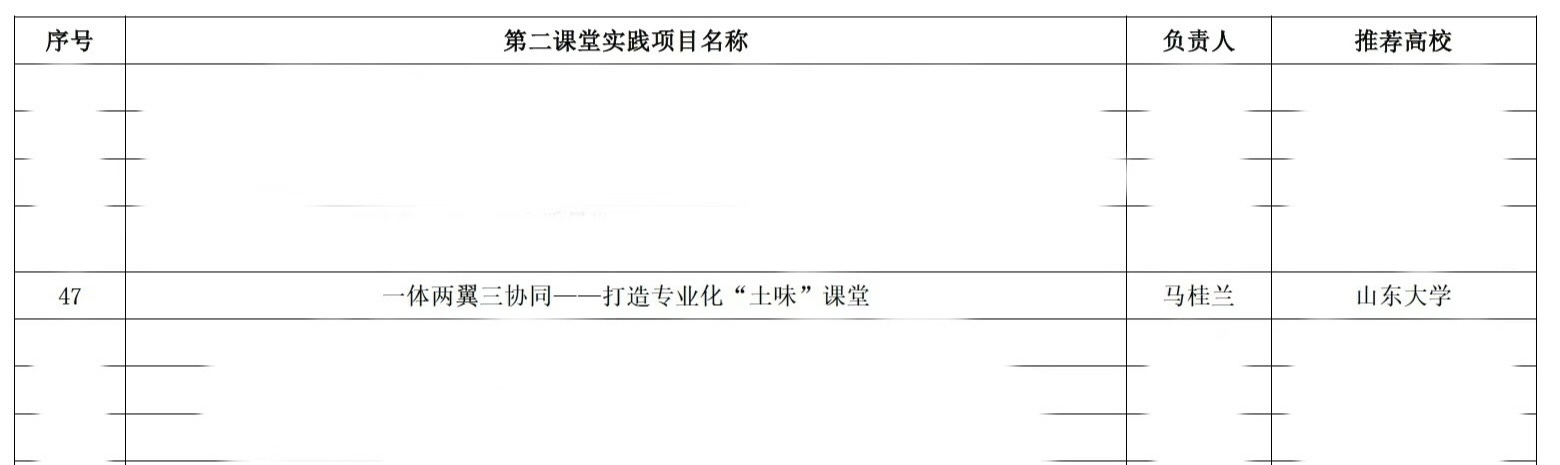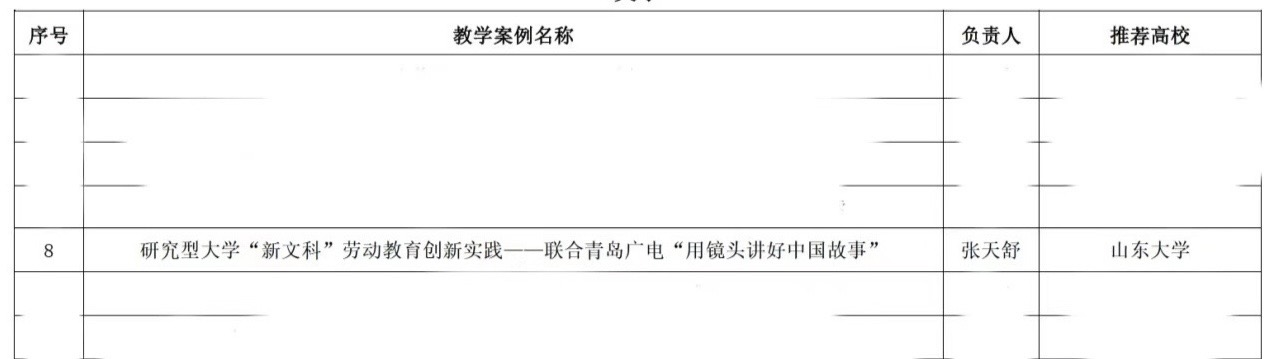 近日,山东省普通高等学校劳动教育教学指导委员会公布了2024年山东省普通本科高校劳动教育典型课程教学设计、教学案例和实践项目遴选结果,政管学院2项成果成功入选,获批数量居全校前列。其中,张天舒教授团队的《研究型大学“新文科”劳动教育创新实践——联合青岛广电“用镜头讲好中国故事”》项目获评2024年山东省普通本科高校劳动教育典型教学案例,马桂兰副教授团队的《一体两翼三协同——打造专业化“土味”课堂》项目获评2024 年山东省普通本科高校劳动教育典型第二课堂实践项目。