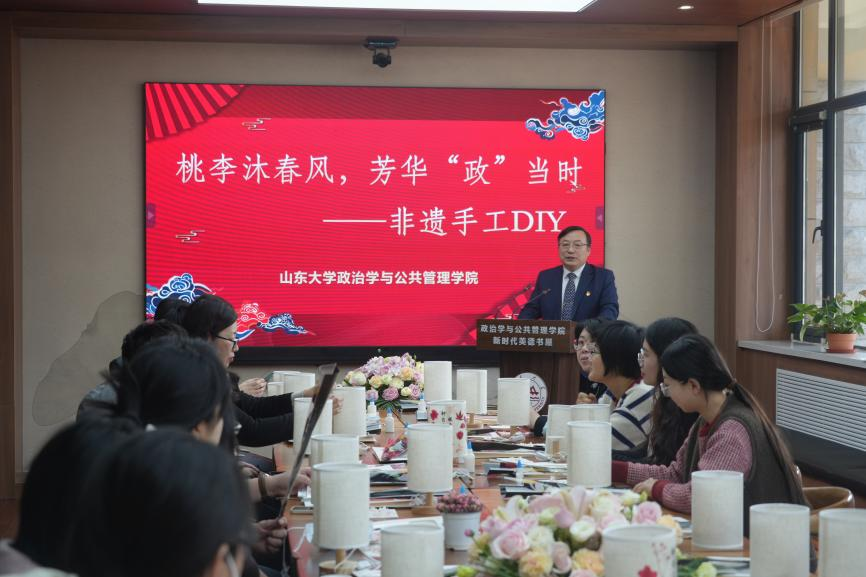 3月7日上午,学院于新时代美德书屋举办了“桃李沐春风,芳华‘政’当时”——非遗手工艺品DIY活动。本次活动以压花台灯制作——非遗文化体验与传承为主题,为学院女性教职工带来了一场别具匠心的文化体验之旅。学院党委书记李海燕主席活动并致辞,活动由学院党委副书记石莹主持。