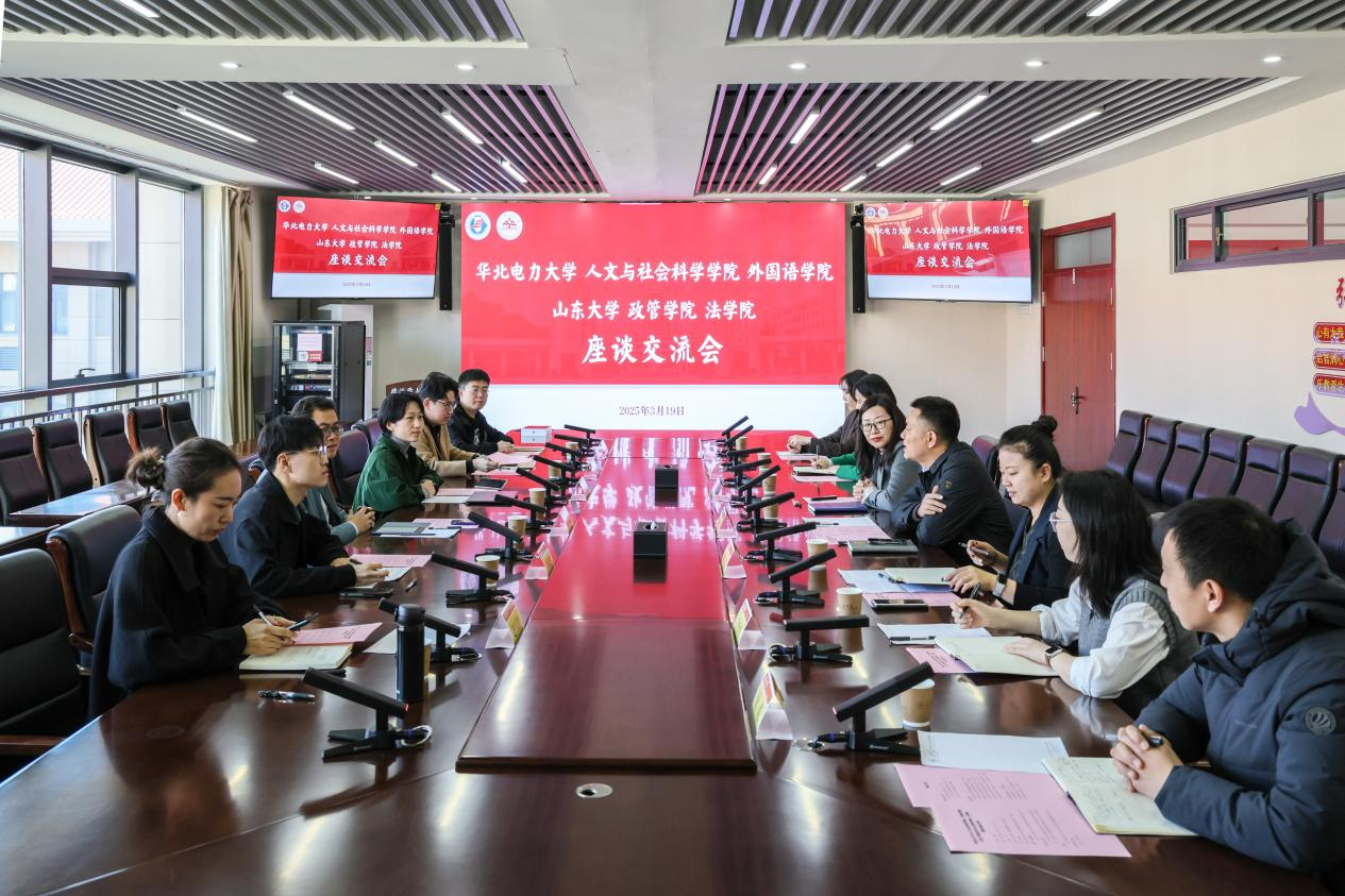 3月19日上午,304永利集团官网入口、法学院与华北电力大学人文与社会科学学院、外国语学院座谈交流会在华岗苑南楼举行。座谈会围绕学生考研、考公相关政策和工作方法,学生就业帮扶特色工作经验以及其他重点工作的相关举措等主题开展交流与讨论。会议由政管学院党委副书记马桂兰主持,法学院党委副书记宋继斌,华北电力大学人文与社会科学学院党委副书记崔灿、外国语学院党委副书记马冬及各学院辅导员团队参与座谈。