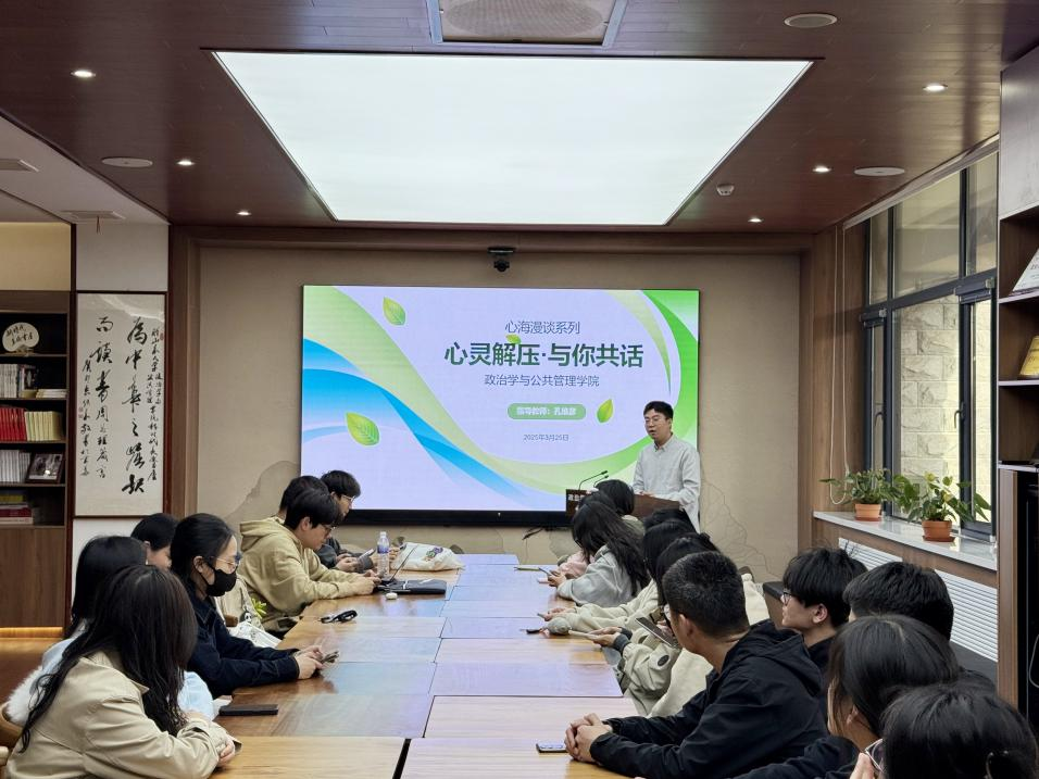 为强化校园心理健康防线,建全心理健康共育队伍,3月25日,304永利集团官网入口举办了以“心灵解压·与你共话”为主题的心海漫谈系列沙龙活动,本次沙龙由政管学院辅导员孔维彦主讲,各班班委成员积极参与。