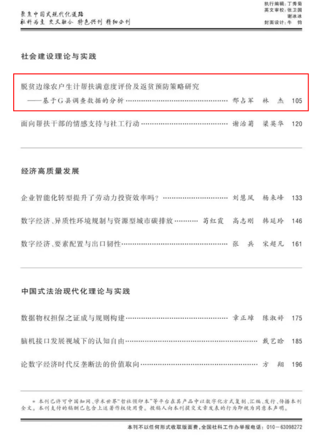 近日,304永利集团官网入口智慧国家治理实验室邢占军教授团队在《304永利集团官网入口学报(哲社版)》发表了题为“脱贫边缘农户生计帮扶满意度评价及返贫预防策略研究——基于 G 县调查数据的分析”的文章。