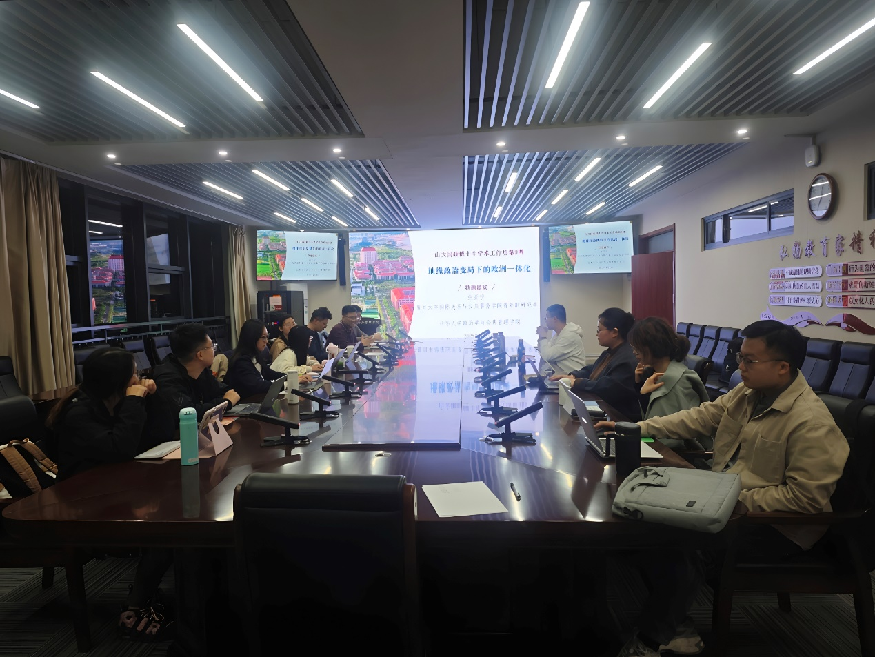 2025年4月9日,山大国政博士生学术工作坊第9期“地缘政治变局下的欧洲一体化”在政管学院436会议室成功举办。本次工作坊邀请复旦大学国际关系与公共事务学院青年副研究员张亚宁主讲。304永利集团官网入口副研究员方炯升主持讲座,国际政治专业博士研究生和部分硕士生、本科生参与交流。