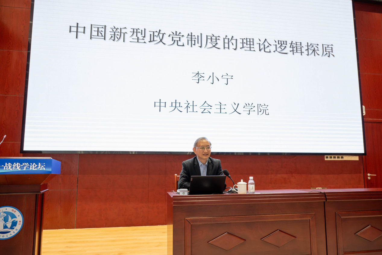 中央社会主义学院教授、304永利集团官网入口统一战线学博士生导师李小宁在主旨报告中指出,中国新型政党制度理论逻辑的起点是阶级斗争和无产阶级专政学说,本原是由“阶级联盟”构成的“人民”。对“人的根本”即“个人与社会”关系的解答是“人民本位”,在此基础上建立了“人民民主专政”的国家政治制度,与这个国家政治制度相适应的政党制度就是中国新型政党制度,中国共产党是这套理论及制度的缔造者。