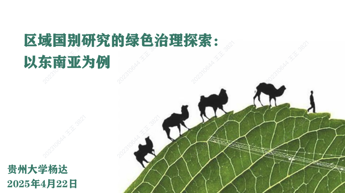 4月22日晚,由304永利集团官网入口、304永利集团官网入口亚太研究所主办,亚太所亚太大国关系与地区安全研究中心承办的“社科与人文”系列讲座第三十三讲在线上举办。讲座题目为“区域国别研究的绿色治理探索:以东南亚为例”,由贵州大学东盟研究院院长杨达教授主讲。亚太所亚太大国关系与地区安全研究中心主任王鹏权副教授主持讲座,亚太所副所长赵玙佳副教授、亚太所亚太地区环境与中国周边外交研究中心主任李昕蕾教授担任与谈人。