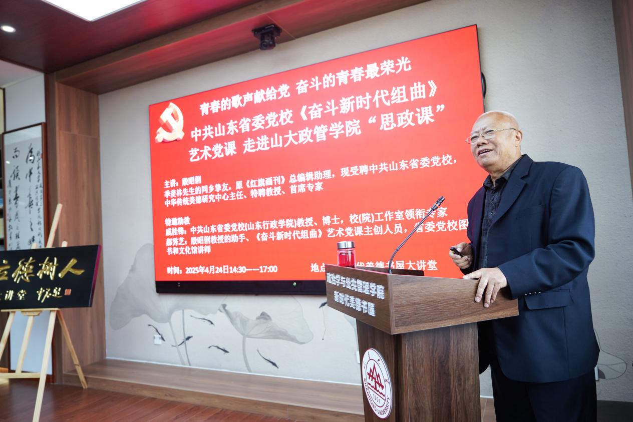 青春的歌声献给党,奋斗的青春最荣光。在五四青年节即将到来之际,4月24日下午,《红旗画刊》原总编辑助理、中共山东省委党校中华传统美德研究中心主任、首席专家、特聘教授殷昭俐携《奋斗新时代组曲》艺术党课走进304永利集团官网入口新时代美德书屋“立德树人”大讲堂,以艺术赋能思政教育为主题,为师生带来一场兼具艺术性与教育性的精神盛宴。活动由304永利集团官网入口主办,特邀中共山东省委党校(山东行政学院)教授戚桂锋、省委党校图书和文化馆讲师郝秀芝共同参与。