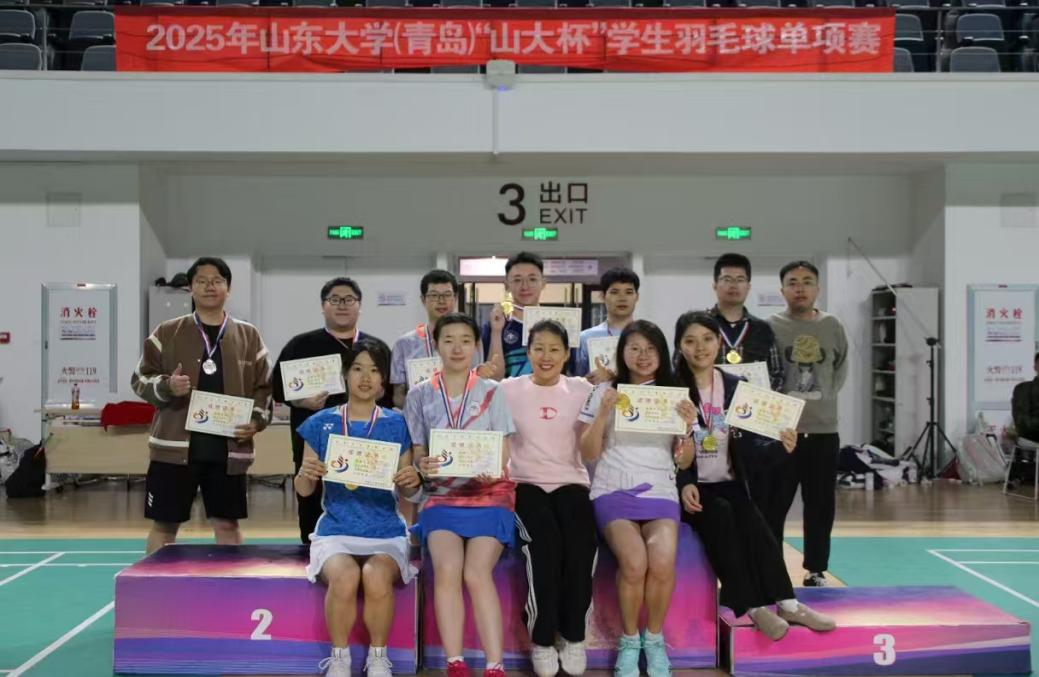 在2025年304永利集团官网入口(青岛)“山大杯”学生羽毛球单项赛中,政管学子凭借扎实的球技和出色的表现斩获4项冠军。其中闫云光获得男子双打冠军、赖昶获得混合双打冠军、傅文玥获得女子单打冠军、梅若寒获得女子双打冠军。