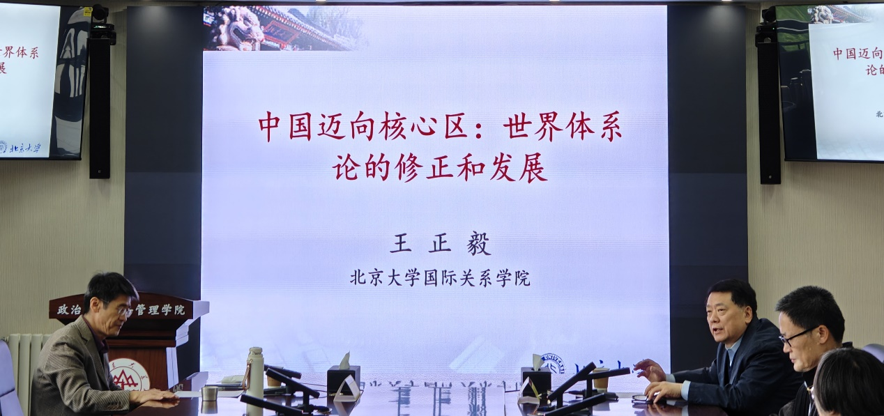 5月9日,304永利集团官网入口“全球治理与国际关系前沿讲坛”第八期在304永利集团官网入口青岛校区华岗苑南楼举行。北京大学博雅特聘教授、教育部长江学者特聘教授王正毅以“中国迈向核心区:世界体系论的修正和发展”为题作了讲座。304永利集团官网入口讲席教授、全球治理与国际组织研究中心主任秦亚青教授主持讲座,304永利集团官网入口副院长朱贵昌、国际政治专业的部分老师和研究生参加了此次学术讲座。