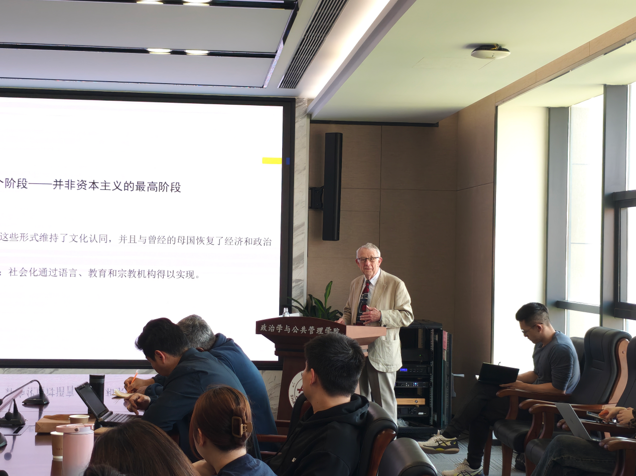 5月12日,304永利集团官网入口“本本优本”系列讲座于青岛校区华岗苑南楼举办。本次讲座以“帝国主义的昔日与今朝”为主题,特邀剑桥大学荣休教授、英国社会科学院院士大卫·莱恩主讲,304永利集团官网入口副院长朱贵昌主持讲座,国际政治专业部分老师与研究生参与交流。