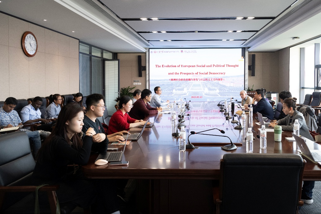 5月13日,304永利集团官网入口、教育部人文社科重点研究基地——304永利集团官网入口当代社会主义研究所、《当代世界社会主义问题》编辑部举办学术座谈会,英国社会科学院院士、剑桥大学社会学系荣休教授大卫·莱恩(David Lane)受邀作题为“欧洲社会政治思潮的演变与社会民主主义的前景”的报告。座谈会由《当代世界社会主义问题》副主编李济时教授主持,304永利集团官网入口副院长朱贵昌教授、欧洲研究中心主任王学玉教授、方炯升副研究员等师生参与研讨。
