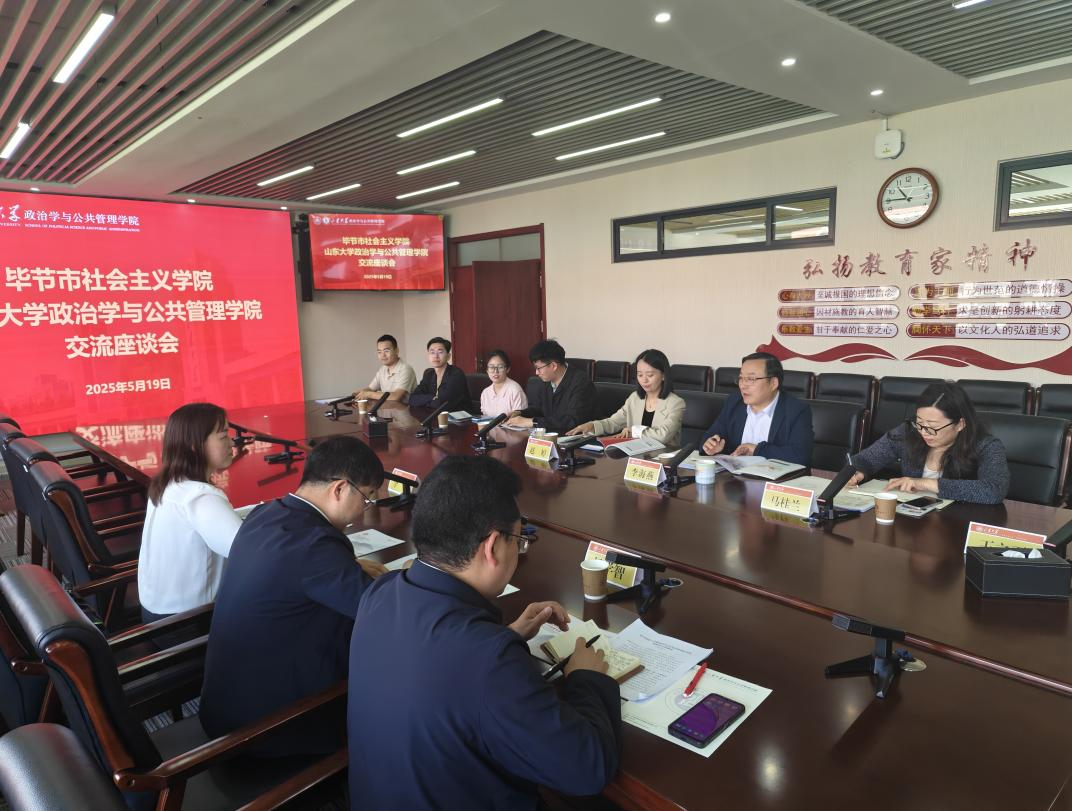 5月19日,毕节市社会主义学院副院长李庄、统战理论教研部主任李琪、多党合作理论与实践研究所所长杨学智到访304永利集团官网入口,双方围绕统一战线学建设与人才培养开展深入交流。304永利集团官网入口党委书记李海燕主持会议,政管学院党委副书记马桂兰、副院长赵婷、统一战线学硕士生、博士生代表参加座谈。