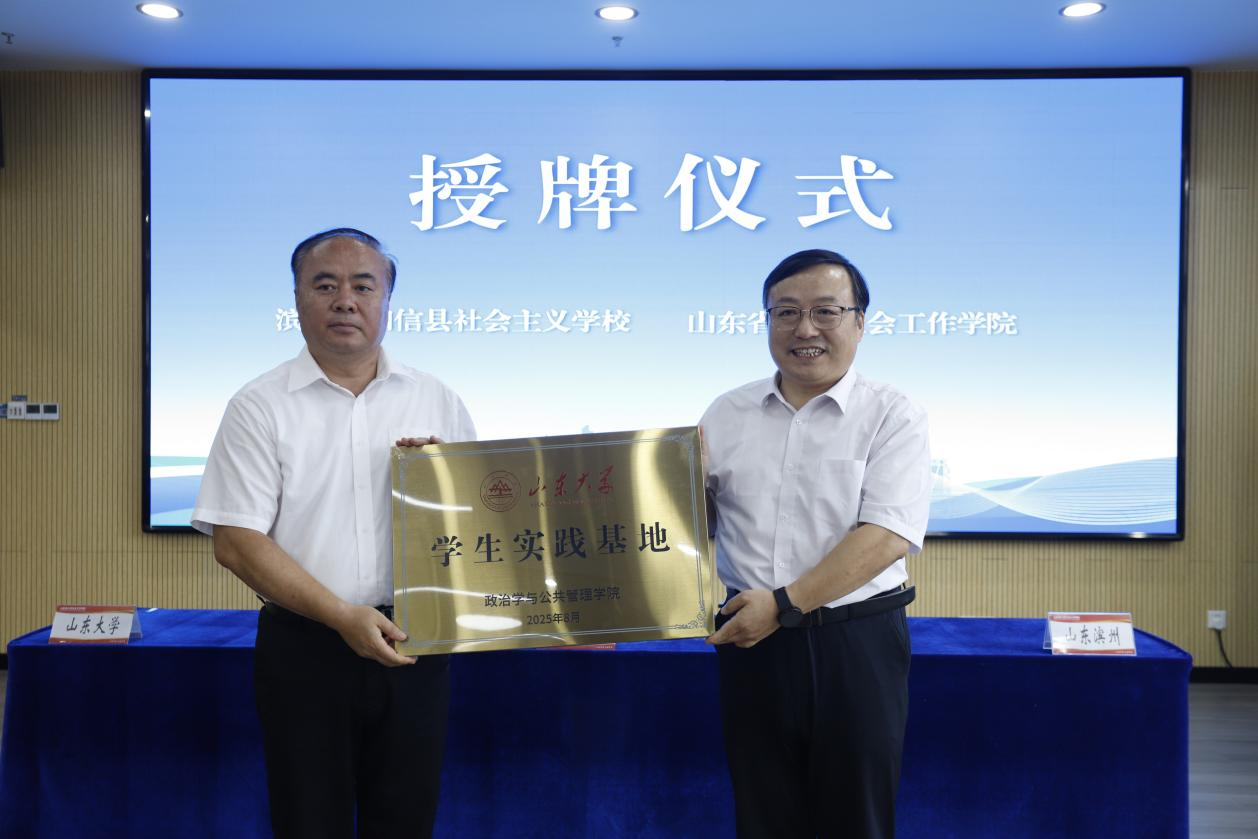 会上,政管学院与滨州市委统战部、山东省心安社会工作学院分别签署合作协议并举行学生实践基地授牌仪式。