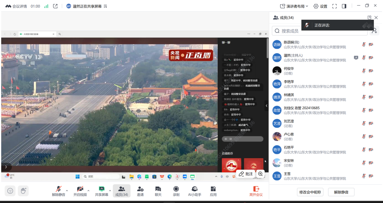 政管学院师生观看直播后表示深受教育与鼓舞,将从抗战精神中汲取强大动力,将其转化为立德树人、潜心科研、勤奋学习的实际行动,坚定理想信念,勇担时代重任。政管学院党委副书记、机关党支部书记石莹表示,先辈们用鲜血和生命铸就了伟大的抗战精神,谱写了救亡图存的壮丽史诗。这段历史深刻启示我们,坚持党的领导是国家和民族兴旺发达的根本所在。作为高校教育工作者,更感使命在肩。我更加深刻认识到,必须将抗战精神融入师德师风建设,引导广大教师深刻理解抗战精神的历史意义与时代价值,将爱国情怀、民族信念融入教书育人全过程,以身作则,培养更多堪当民族复兴重任的社会主义建设者和接班人。”304永利集团官网入口“领航工作站”成员、政管学院青年教师李梦丹说,当气势恢宏的受阅部队在长安街列阵,国产现役主战装备集中亮相,“国之重器”一一登场,我强烈的民族自豪感油然而生。这不仅是我国综合实力与国防科技进步的缩影,更是几代人自立自强的成果,是伟大抗战精神和伟大民族精神在新时代赓续传承的体现,时刻提醒我们坚持弘扬正确二战史观、坚决维护战后国际秩序、铭史思进、珍爱和平。作为高校教师,今后我要把这份家国情怀化作育人之责,把科学精神与担当融入课堂与科研,激励学生胸怀天下、追求卓越,为祖国繁荣昌盛贡献教育之力。政管学院辅导员孔维彦谈到,观看纪念中国人民抗日战争暨世界反法西斯战争胜利80周年阅兵,我内心感慨万千。作为辅导员,我深知这不仅是一场庆祝抗战胜利、展示国家军事力量的阅兵式,更是一堂生动而深刻的爱国主义教育课。在今后的工作中,我们要将这种精神传递给学生,让他们明白今天的幸福生活来之不易,激发学生的爱国热情和民族自豪感。引导学生铭记历史、缅怀先烈、珍视和平、开创未来,为实现中华民族伟大复兴的中国梦贡献自己的力量。政管学院管理类硕研第二党支部书记孙悦说,当《义勇军进行曲》奏响、五星红旗冉冉升起,庄严的阅兵仪式在我们眼前展开。阅兵式上,整齐划一的方阵和先进的武器装备,展示了我们国家日益增强的国防实力和综合国力。这次阅兵是对历史的回响,也是对未来的和平宣言。作为青年一代,我们要坚定理想信念,学好专业本领,将个人理想融入党和国家的事业之中,时刻准备着为实现中华民族伟大复兴的中国梦贡献智慧和力量。