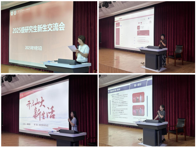 尚丽以研究生信息管理系统为载体,详细讲解了研究生阶段的培养计划、培养环节、课程类型、选课注意事项等。臧丽丽以“开启山大新生活”为主题,从“认识共青团”“共青团在山大”两部分着重介绍了发展团员流程、团员关系转接、推优入党、学院研究生会、学院社团发展等工作。张苗重点讲解了学生奖助勤贷政策和综合评价体系。