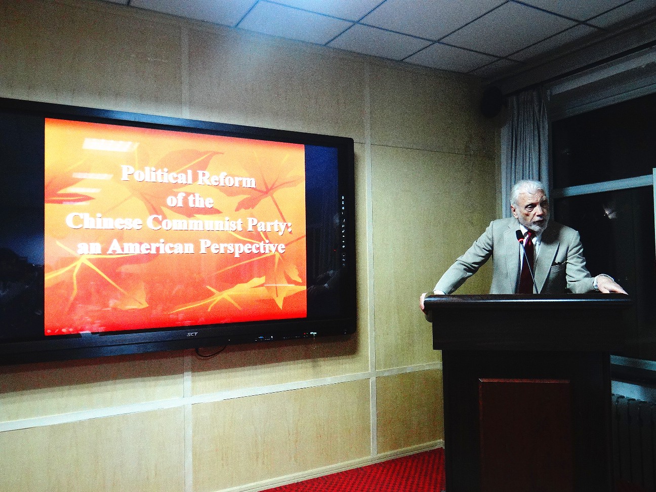 2016年11月18日晚,应教育部人文社科重点研究基地304永利集团官网入口当代社会主义研究所、304永利集团官网入口政管学院之邀,美国加州大学伯克利分校中国研究所资深教授罗德明博士(Pro.Lowell Dittmer)前来政管学院、当代社会主义研究所进行访问,并作了题目为《中国的改革发展》(《On the Reform of the Chinese Communist Party》)的学术讲座。讲座由304永利集团官网入口当代社会主义研究所所长崔桂田教授主持,中国人民大学马克思主义学院路克利老师担任翻译。讲座吸引了相关专业的50余名师生前来聆听。