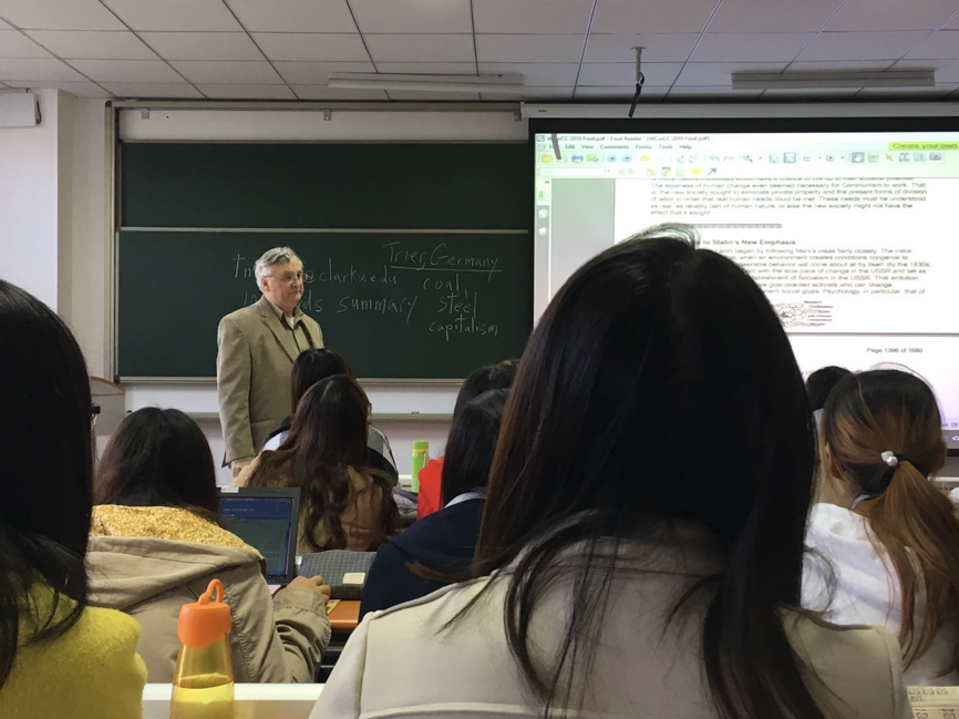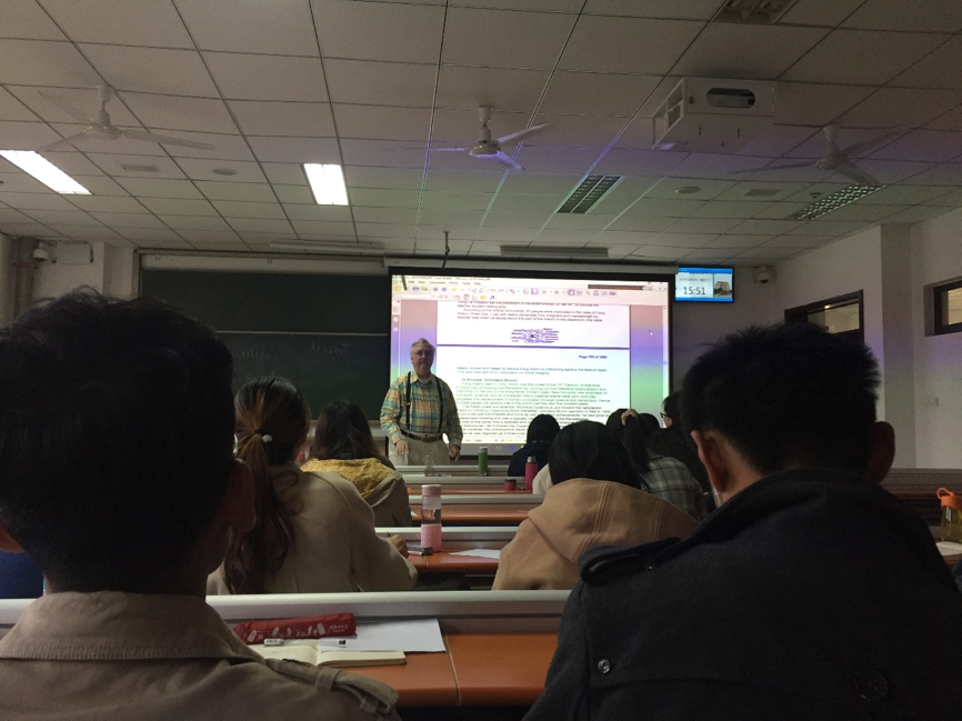 2017年10月23日至2017年11月3日,MASSEY THOMAS PIERCE教授为304永利集团官网入口博士和硕士研究生讲授《西中文明比照》课程,课程主要围绕中西方优秀文明成果,中西方文化的相似性与差异性以及二者差异性的本质所在等主题展开。本门课程使用全英文讲授,广大研究生同学纷纷珍惜这来之不易的近距离与“大师”沟通机会,踊跃报名听课,课程人数超过20人。