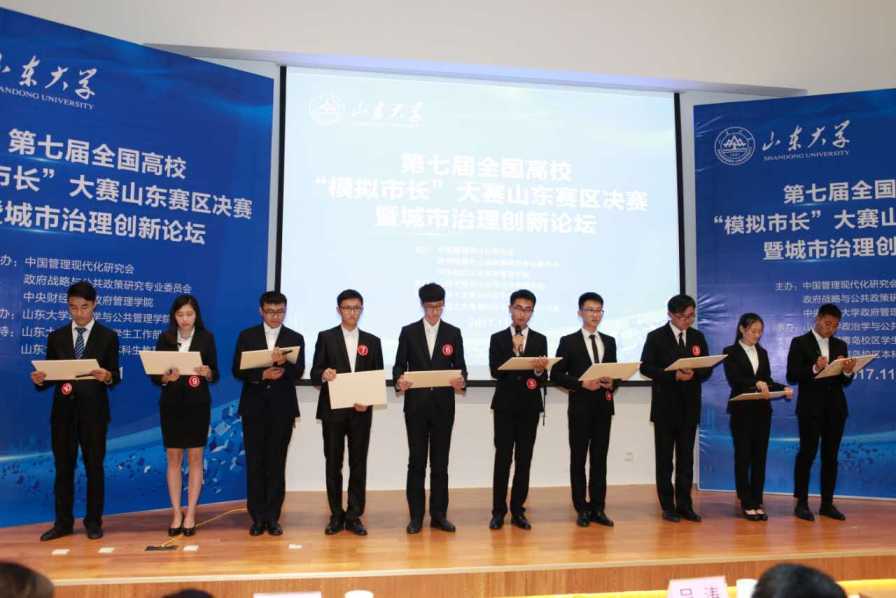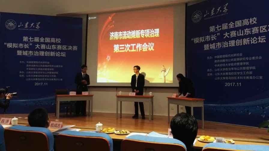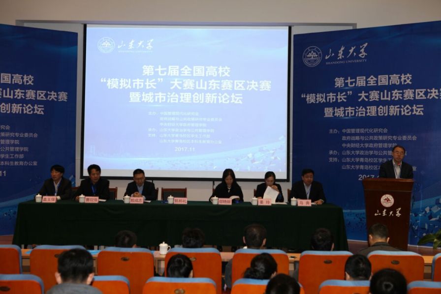 11月11日,第七届全国高校“模拟市长”大赛山东赛区决赛暨城市治理创新论坛在304永利集团官网入口青岛校区成功举办。本次活动由中国管理现代化研究会政府战略与公共政策研究专业委员会和中央财经大学政府管理学院主办,304永利集团官网入口承办,并得到304永利集团官网入口青岛校区学生工作部和本科生教育办公室的支持。来自304永利集团官网入口、中国石油大学、山东师范大学、山东农业大学、青岛大学、济南大学、曲阜师范大学、山东工商学院等高校的10支团队参加了决赛。