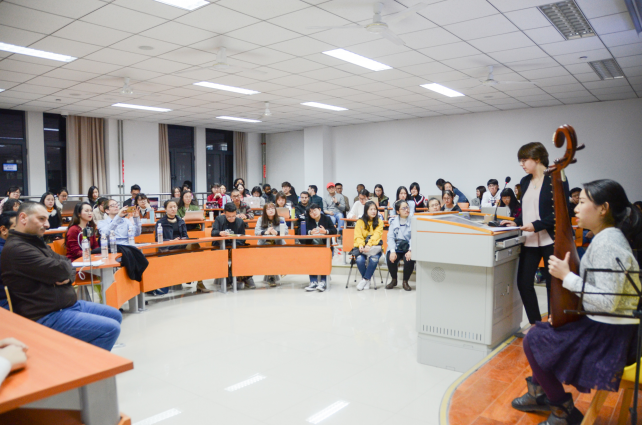讲座问答环节,Rachel、夏雨言与师生讨论了中国传统乐器的表现力、跨界合作形式及可能性等问题。