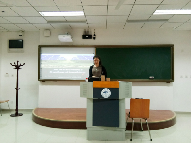 4月25日晚,牛津大学中国研究中心博士后研究员高丽娜博士应邀做客青岛校区,做了“中国与欧盟治理气候变化及可再生能源”专题讲座,政管学院刘琳副教授主持此次讲座,公共治理研究院及其他师生参加了此次讲座。