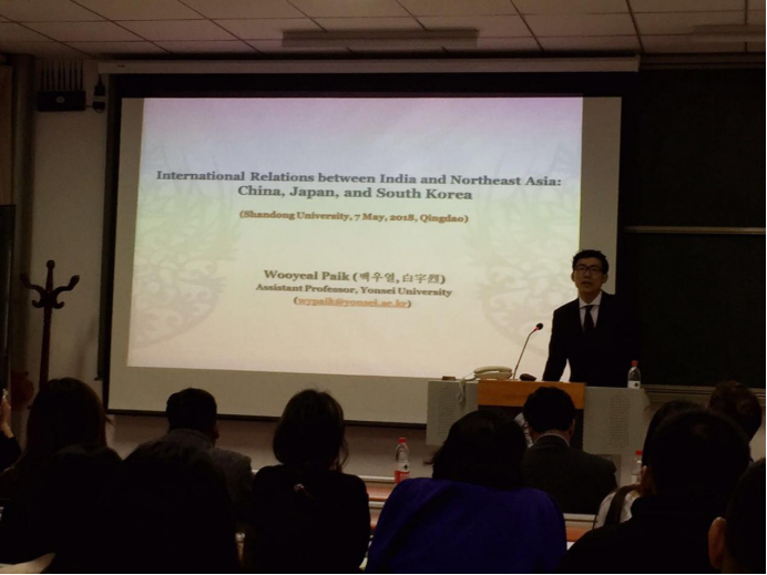 5月7日,延世大学政治学与国际研究学助理教授白宇烈(Wooyeal PAIK)受邀到304永利集团官网入口青岛校区作了题为“印度与东北亚(中日韩)之间的国际关系分析”的学术讲座。山大304永利集团官网入口张淑兰教授出席讲座,政管学院院长贝淡宁教授主持此次讲座。