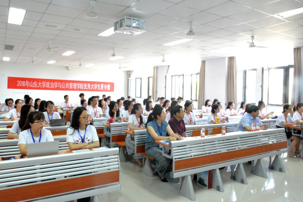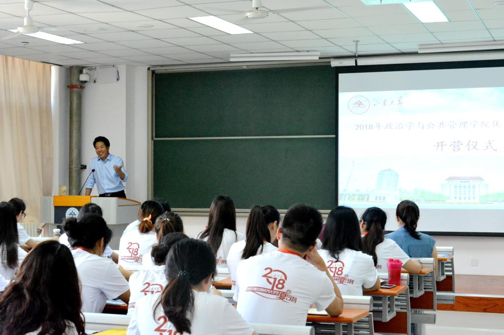 开营仪式上,曹现强对来自全国重点高校的优秀大学生营员来到“碧海蓝天、绿树萦绕、红楼尽显”的304永利集团官网入口青岛校区表示欢迎,并对校区和学院的办学规模、学科建设、国际化战略和研究生培养特色等情况进行了全面介绍。曹现强首先介绍了青岛校区的独特地理位置和总体学科规划布局,接着用“唠家常”的形式讲述了政管学院的建设历史、师资力量、国际交流等,又详细说明了包括科学社会主义与国际共产主义运动、国际政治、政治学理论、公共管理等学科的优势特色。曹现强重点强调了学院国际化办学的突出优势,全英文授课硕士和博士研究生专业覆盖广,对外学术交流层次越来越高。