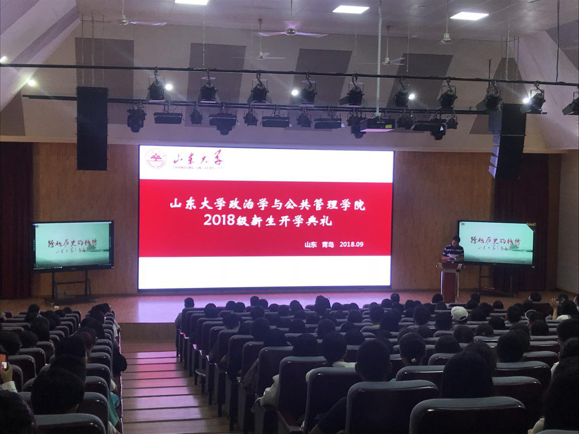 齐鲁青年学者孔新峰教授用幽默风趣的语言为大家上了题为《四叔二大爷》的开学第一课。他引用《论语》,希望大家记得“向学而后生”“学而时习、知行合一”“广结善缘”“耐心求学”;引用《大学》,鼓励大家学“大人之学,成为顶天立地大人物,而非粗糙的利己主义者”;引用《中庸》,劝诫大家珍惜大学生活;引用《孟子》,希望政管学院学子要有孟子的沛然正气和勇猛精进。