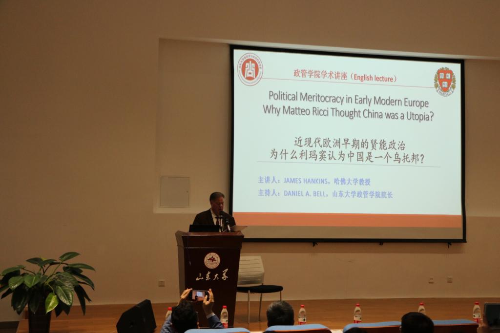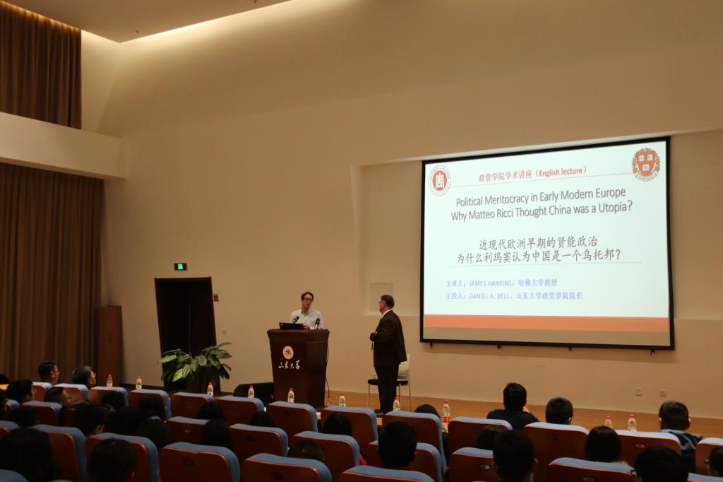 3月20日,美国哈佛大学James Hankins教授应304永利集团官网入口的邀请,在青岛校区图书馆报告厅作了题为“近现代欧洲早期的贤能政治,为什么利玛窦认为中国是一个乌托邦?”的学术讲座,304永利集团官网入口政管学院院长贝淡宁主持讲座。