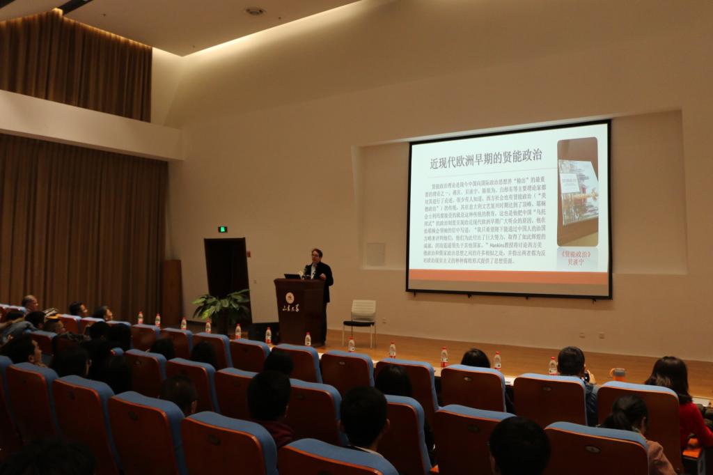 在互动环节,现场师生围绕所讲内容提出诸多问题,涉及贤能政治对战争的限制、贤能政治在欧洲的实践问题、研究方法论以及欧洲思想家对华评价转变原因等领域,Hankins教授对每个问题都进行了回复,与在场师生进行了深入交流。讲座取得圆满成功,获得同学们热烈的掌声。