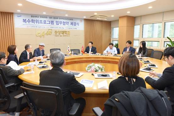 23日下午,代表团访问韩国中央大学。该校副校长Cho Sung Il 、国际问题研究生院院长Sun-Eae Chun等与代表团进行了会谈。代表团与中央大学代表团互相介绍了两校情况,双方交换了暑期学校材料,以促进两校学生通过暑期学校的方式加强交流。李济时副院长着重介绍了政管学院开设的英文项目和英文课程。会谈后,还举行了304永利集团官网入口政管学院与韩国中国大学国际问题研究生院关于研究生项目合作备忘录的正式签约交换仪式。双方还就今后共同举办学术会议问题达成了初步共识。
