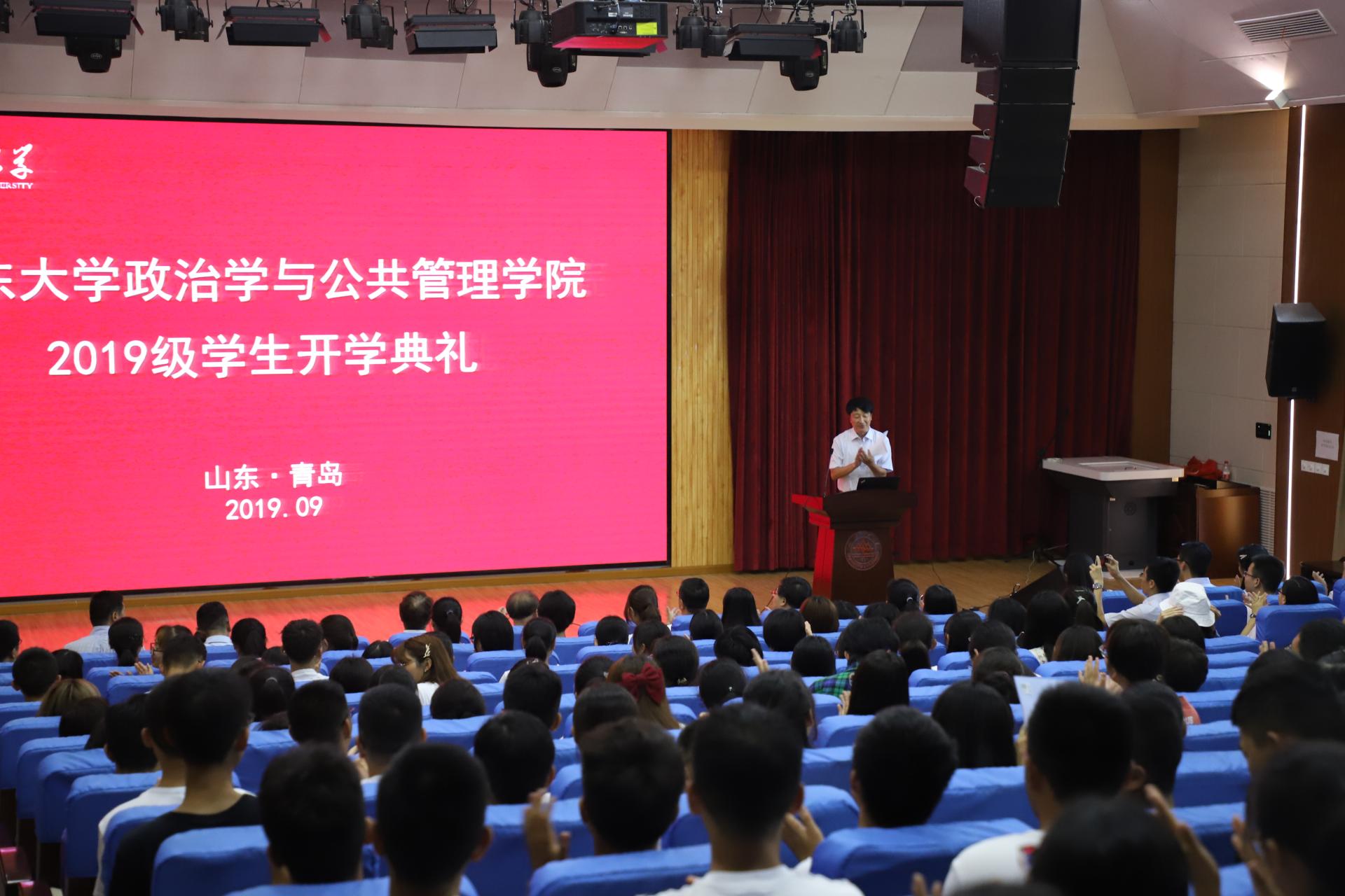 9月5日上午,304永利集团官网入口2019级新生开学典礼在青岛校区会文南楼举行。青岛校区党工委副书记郭邦礼教授、政管学院院长贝淡宁教授,学院领导班子成员、师生代表以及2019级全体新生参加开学典礼。学院党委书记盖玉强教授主持典礼。