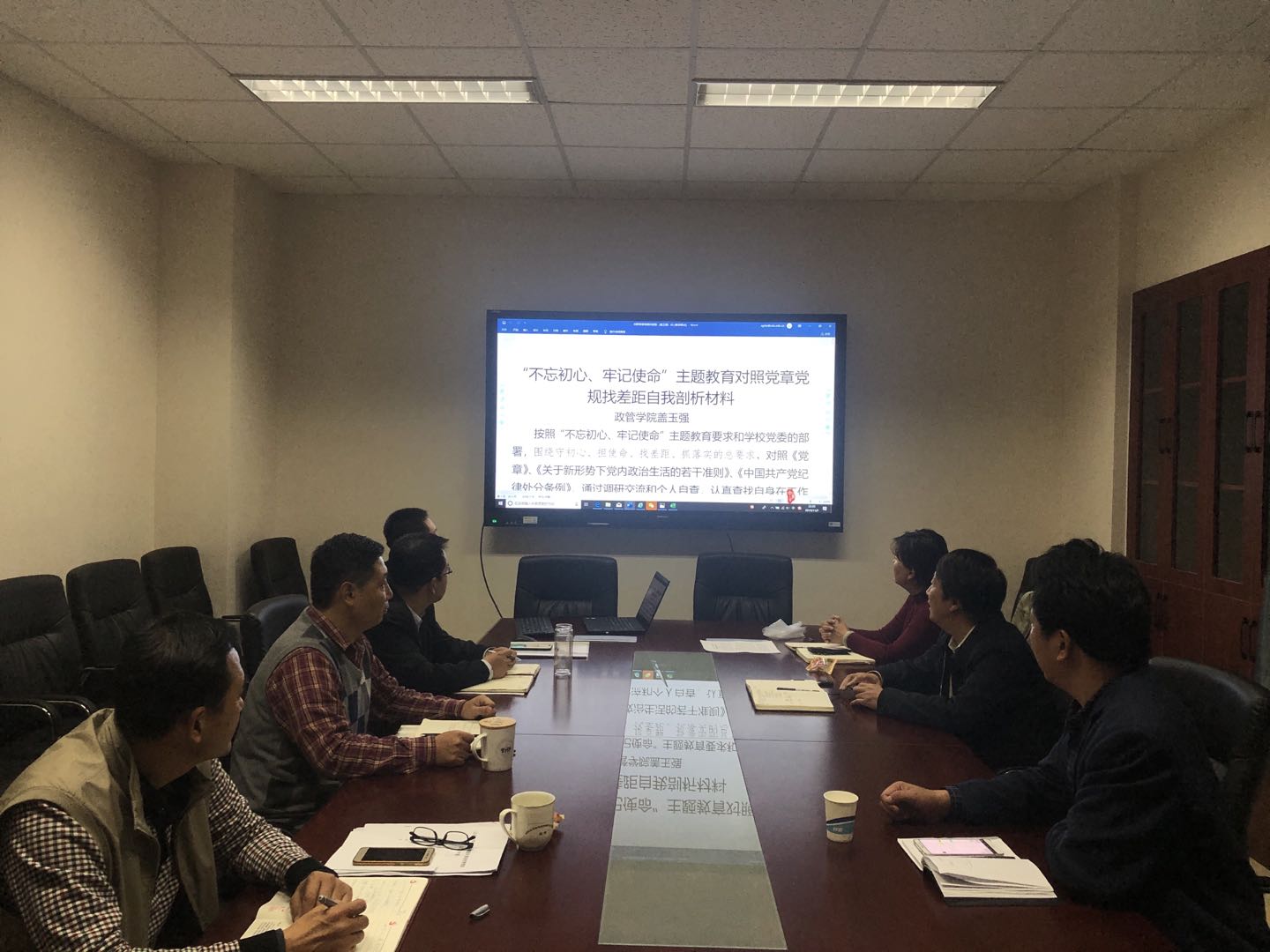 学院党委对开好这次专题会议高度重视,作了认真准备。会前,每位班子成员在深入学习贯彻习近平总书记关于“不忘初心、牢记使命”主题教育重要论述的基础上,对照党章党规,重点对照党章、《关于新形势下党内政治生活的若干准则》和《中国共产党纪律处分条例》,认真进行自学,撰写对照检视材料。