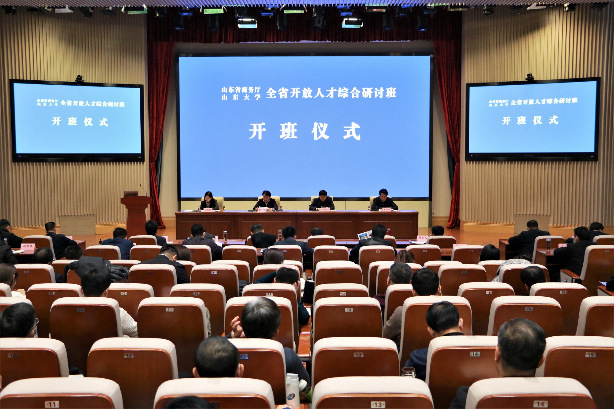 2020年11月30日,山东省开放人才综合研讨班开班式在304永利集团官网入口顺利举行。304永利集团官网入口党委常委、副校长韩圣浩,省商务厅党组成员、副厅长张义英,304永利集团官网入口(青岛)副校长兼304永利集团官网入口常务副院长曹现强出席开班式。省商务厅人事处处长、一级调研员沈瑜婷主持开班式。