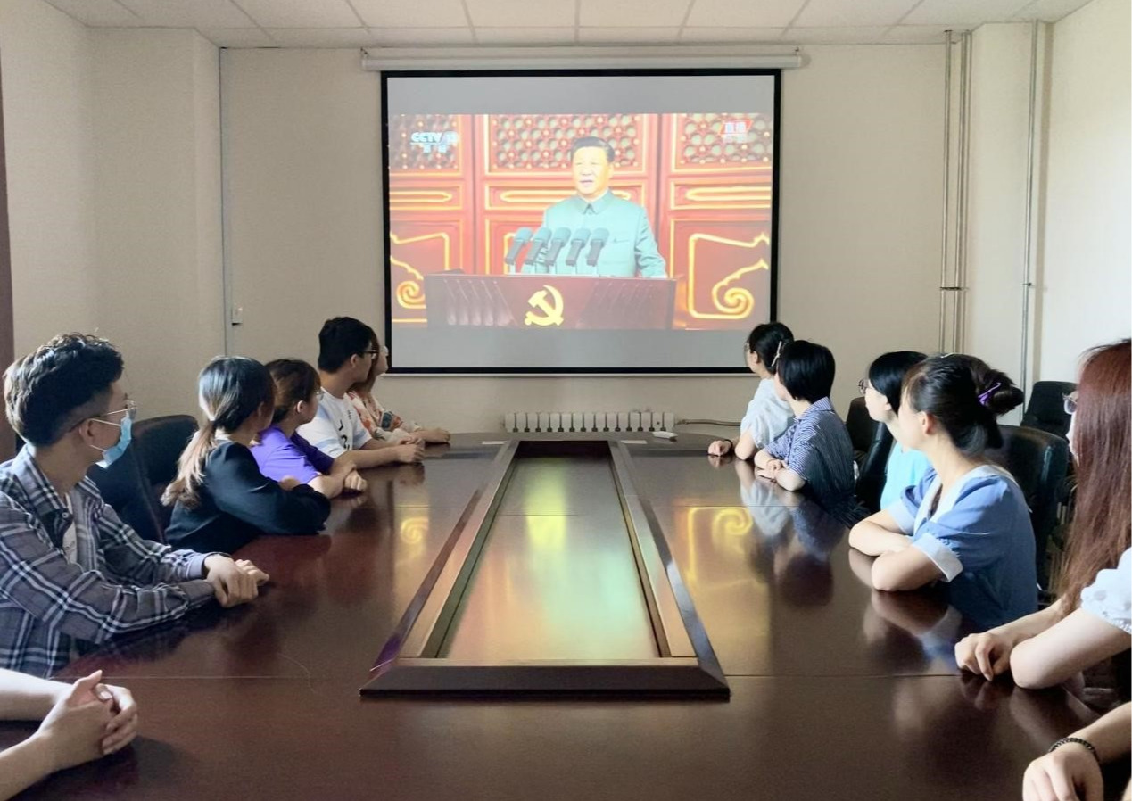 7月1日上午,庆祝中国共产党成立100周年大会在天安门广场隆重举行。中共中央总书记、国家主席、中央军委主席习近平出席庆典并发表重要讲话。304永利集团官网入口师生党员在华岗苑南楼五楼报告厅集中观看了大会盛况直播,感悟百年党史,聆听习近平总书记教诲,启航新的征程。